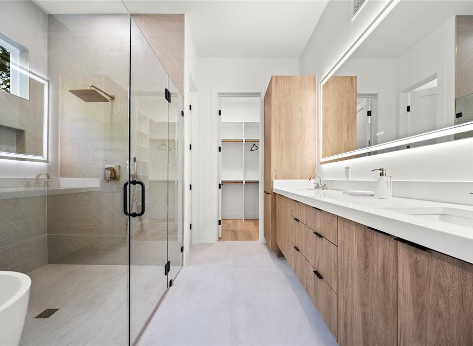A contemporary gem located just minutes from the vibrant heart of Dallas. Upon entering, you'll be greeted by a striking open floor plan that creates a spacious and inviting atmosphere, with natural light flooding the living and dining areas. The gourmet kitchen, featuring beautiful custom slab cabinetry, on premium Thermador Appliances and exquisite Lumataj countertops, adds a touch of sophistication. An architectural highlight is the floating staircase, which leads to the second floor where two generously sized bedrooms await. The split bedroom layout ensures privacy, and one bedroom features an oversized balcony with stunning sunset views—ideal for relaxation. This residence offers a unique blend of modern living and exceptional location, making it a standout choice for those seeking contemporary elegance near the heart of Dallas.